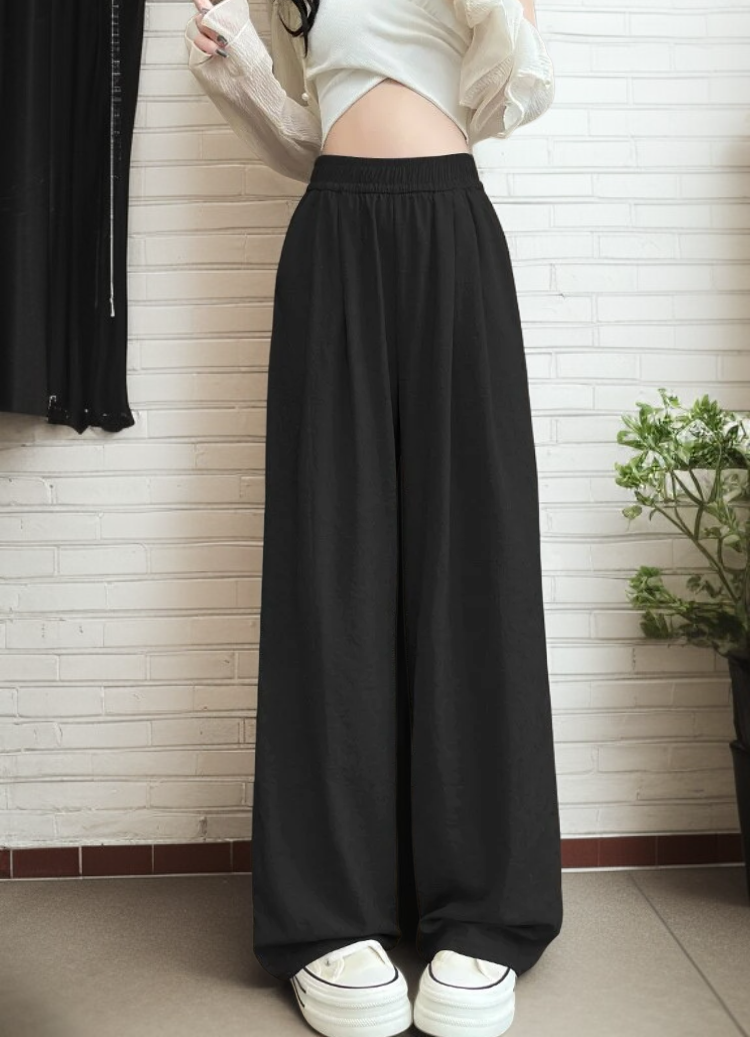 ● 軽やかなアイスシルク素材を使用し、夏でも涼しく快適な履き心地を実現。汗ばむ季節に最適なワイドレッグパンツです。