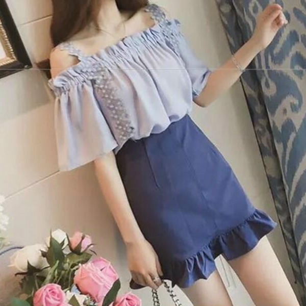 白い半袖トップスレディースストラップレスワンネックおなかカバーシフォンブラウスキャミソール半袖